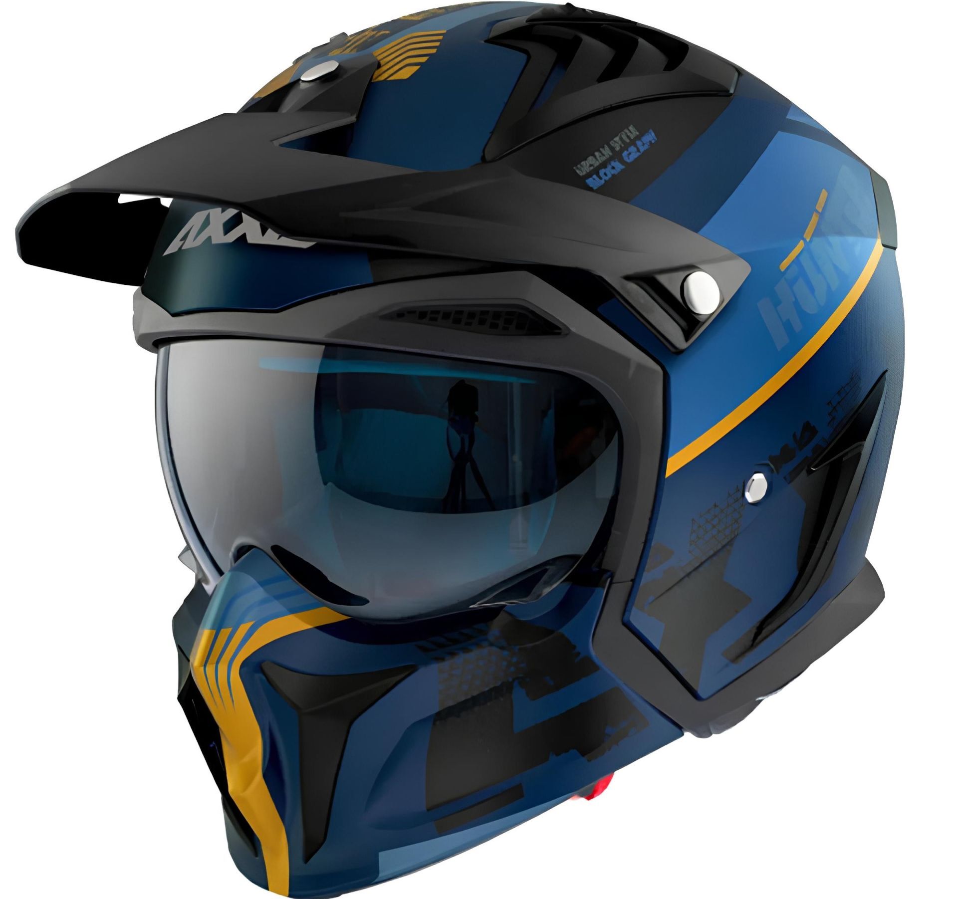 Bu dual-sport modüler kask, Axxis serisine yeni bir görünüm kazandırıyor. Yeni Hunter SV, AXXIS'in çıkarılabilir çene korumasına sahip ilk kaskıdır.