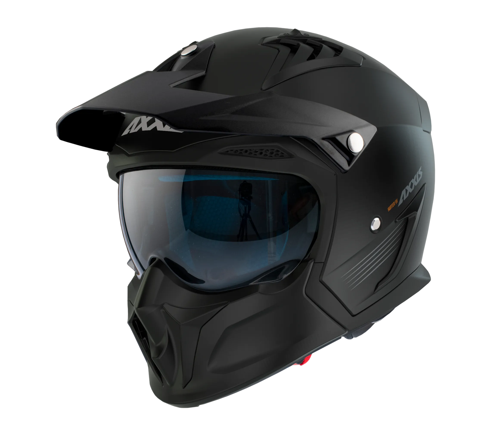 Bu dual-sport modüler kask, Axxis serisine yeni bir görünüm kazandırıyor. Yeni Hunter SV, AXXIS'in çıkarılabilir çene korumasına sahip ilk kaskıdır.