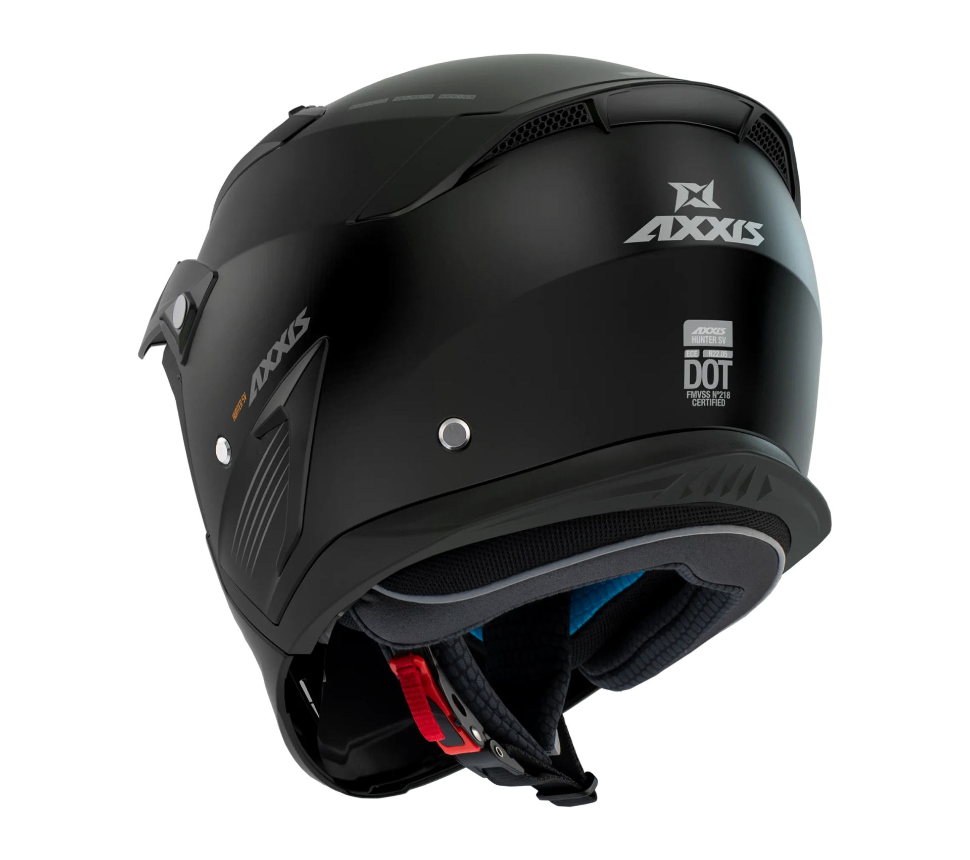 ECE 22.05, DOT, PJ: Axxis Hunter SV, ECE 22.05, DOT ve modüler kasklar için özel olan PJ sertifikasyonlarına uygundur.