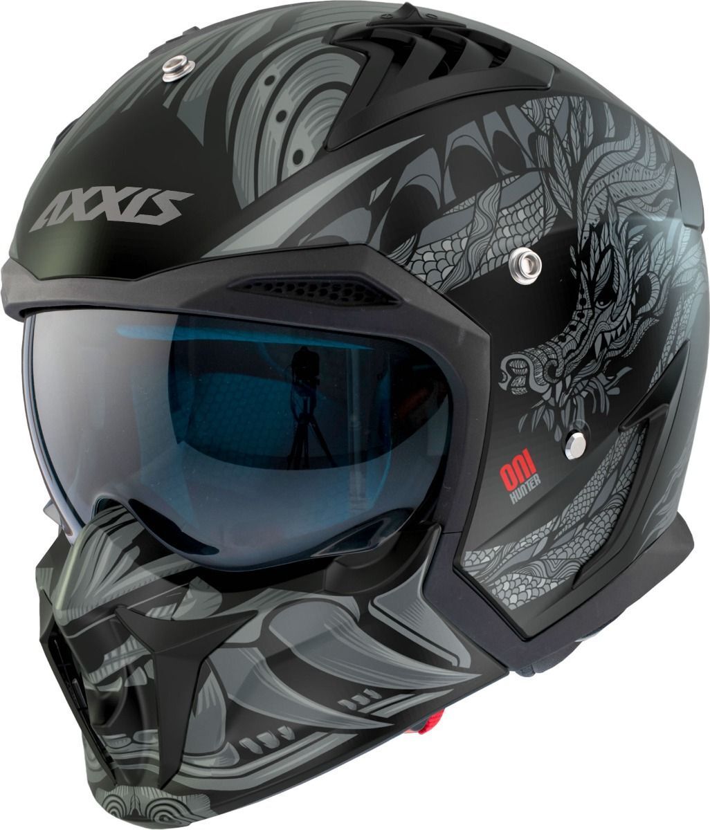 Bu dual-sport modüler kask, Axxis serisine yeni bir görünüm kazandırıyor. Yeni Hunter SV, AXXIS'in çıkarılabilir çene korumasına sahip ilk kaskıdır.