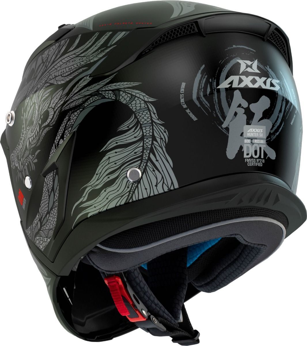 ECE 22.05, DOT, PJ: Axxis Hunter SV, ECE 22.05, DOT ve modüler kasklar için özel olan PJ sertifikasyonlarına uygundur.