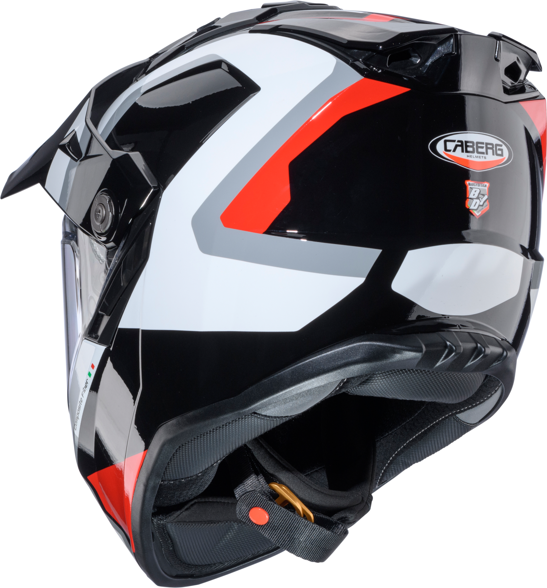 Güvenlik: Caberg SOS MEDICAL ID, alüminyum Double D halkalı bağlantı sistemi, vizör kilitleme mekanizması.