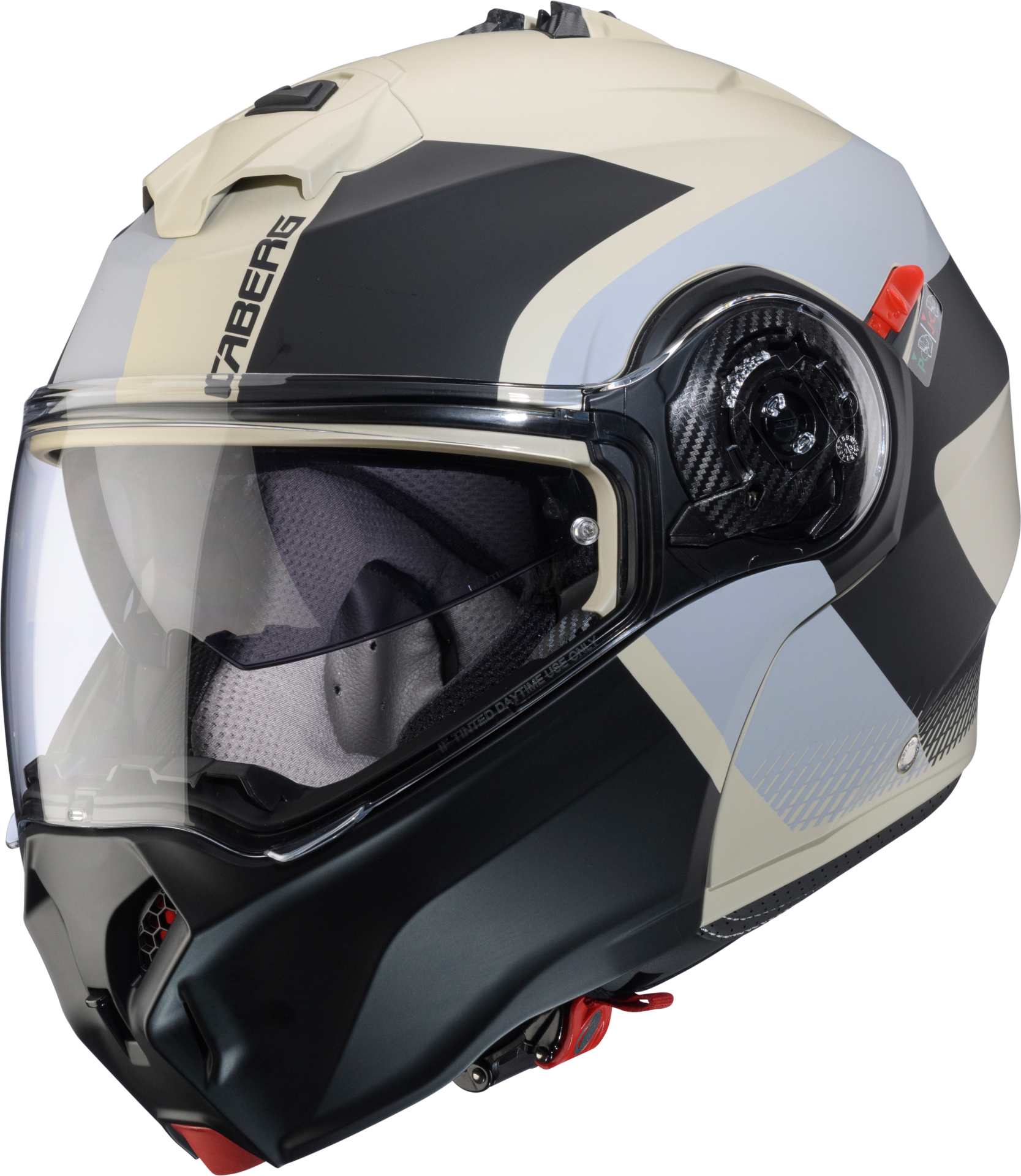 DUKE EVO, Caberg’in DUKE modelinin evrimidir. ECE 22.06 onaylıdır, nefes alabilen kumaşlar, çene koruma ve vizör açma için yeni mekanizmalara sahiptir. Double Visor Tech (çift vizör teknolojisi) ile donatılmış olup, PRO SPEAK EVO iletişim sistemiyle uyumludur. Farklı renk ve grafik seçenekleri mevcuttur.