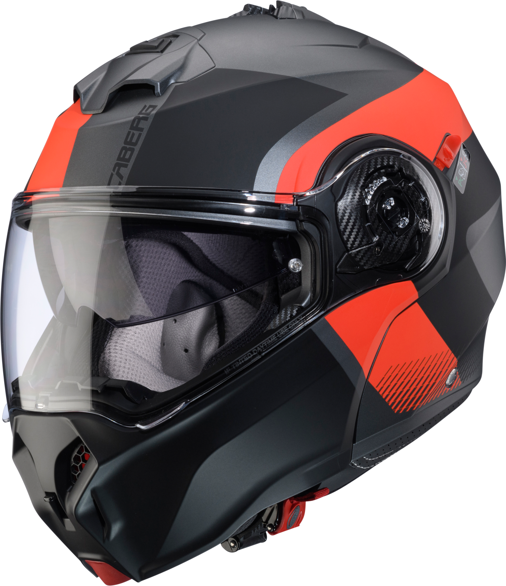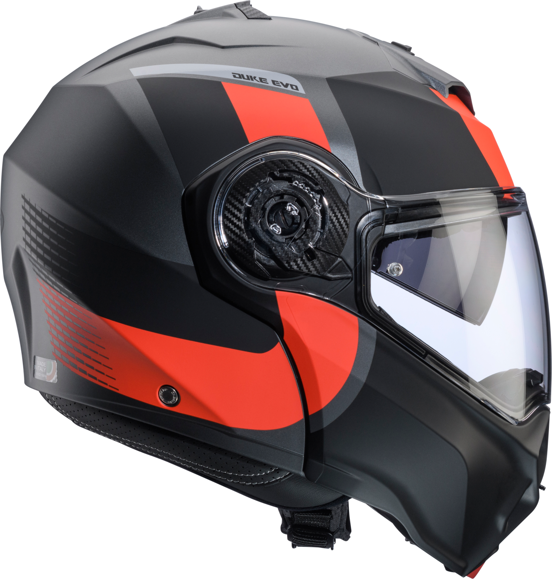 DUKE EVO, Caberg’in DUKE modelinin evrimidir. ECE 22.06 onaylıdır, nefes alabilen kumaşlar, çene koruma ve vizör açma için yeni mekanizmalara sahiptir. Double Visor Tech (çift vizör teknolojisi) ile donatılmış olup, PRO SPEAK EVO iletişim sistemiyle uyumludur. Farklı renk ve grafik seçenekleri mevcuttur.