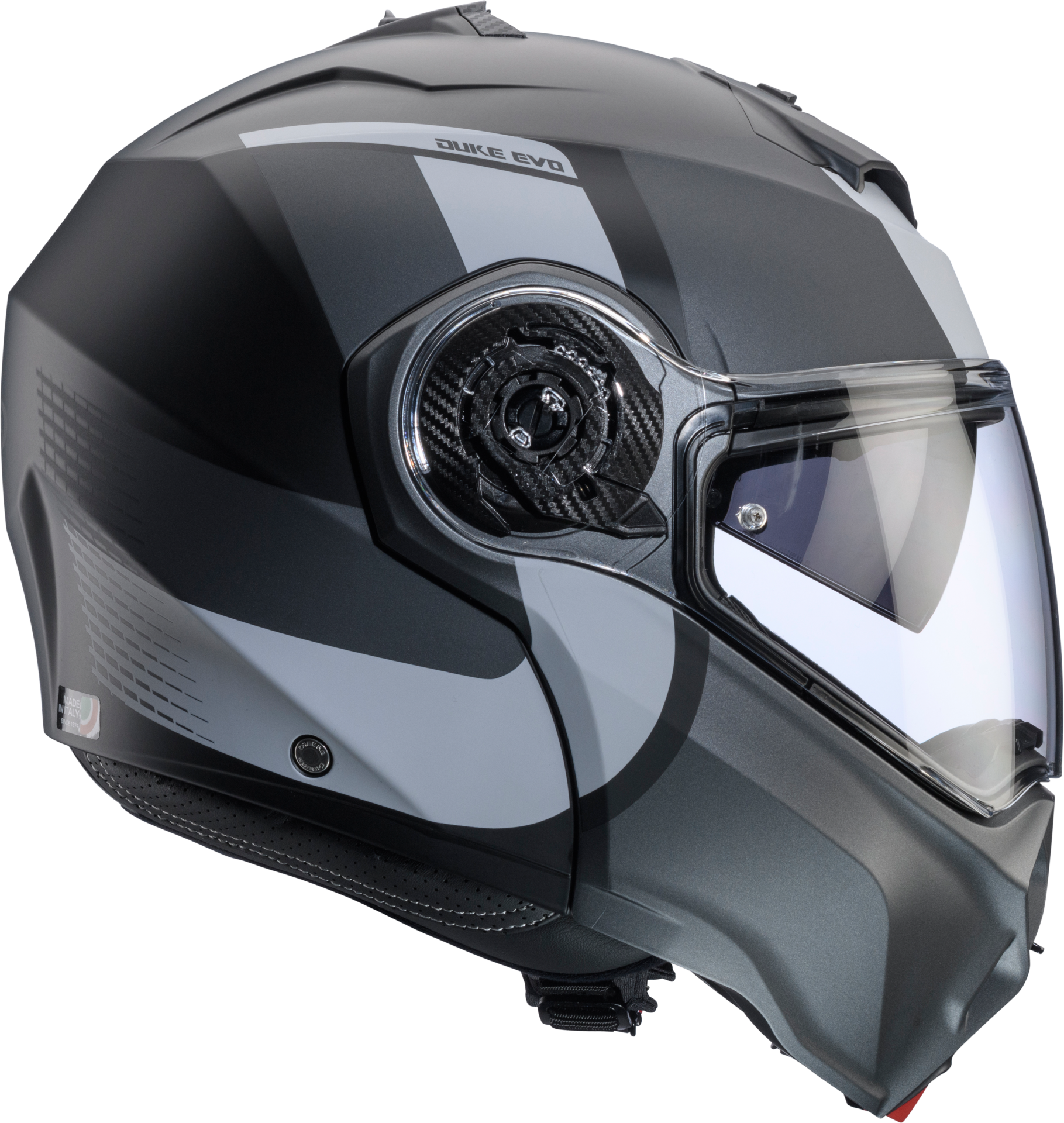 DUKE EVO, Caberg’in DUKE modelinin evrimidir. ECE 22.06 onaylıdır, nefes alabilen kumaşlar, çene koruma ve vizör açma için yeni mekanizmalara sahiptir. Double Visor Tech (çift vizör teknolojisi) ile donatılmış olup, PRO SPEAK EVO iletişim sistemiyle uyumludur. Farklı renk ve grafik seçenekleri mevcuttur.