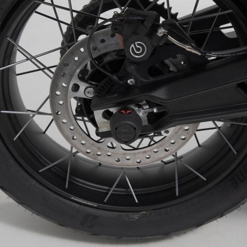 Aşınmaya dayanıklı plastikten üretilen arka aks kaza pedleri, olası bir düşme durumunda salınım kolunu (salyangoz) hasardan korur. %30 cam elyaf içeriğine sahip olan kaza pedi çekirdeği darbelere karşı dayanıklıdır. Pürüzsüz yüzeyi sayesinde mükemmel kayma özellikleri sunar. Kırmızı renkteki cilalı boğa logosu ise motosikletinize görsel bir vurgu katar.