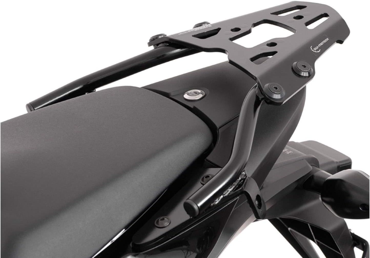 Şık ve çok yönlü ALU-RACK, motosikletler için etkileyici bir bagaj taşıyıcıdır. Uygun adaptör plakası ile birlikte kullanıldığında, SW-MOTECH veya diğer üreticilerin topcase'leri ve SysBag 30 çantaları için güvenli bir tutuş sağlar. Adaptör plakası, ALU-RACK üzerine yalnızca üç mandallı bağlantıyla kolayca monte edilir. Topcase'i adaptör plakasına bağlamak da QUICK-LOCK hızlı serbest bırakma sistemi sayesinde sadece bir bilek hareketiyle mümkündür. ALU-RACK, ayrıca kuyruk çantalarının sabitlenmesi için de uygundur; özellikle ayrı olarak temin edilebilen uzatma aparatıyla birlikte kullanıldığında.